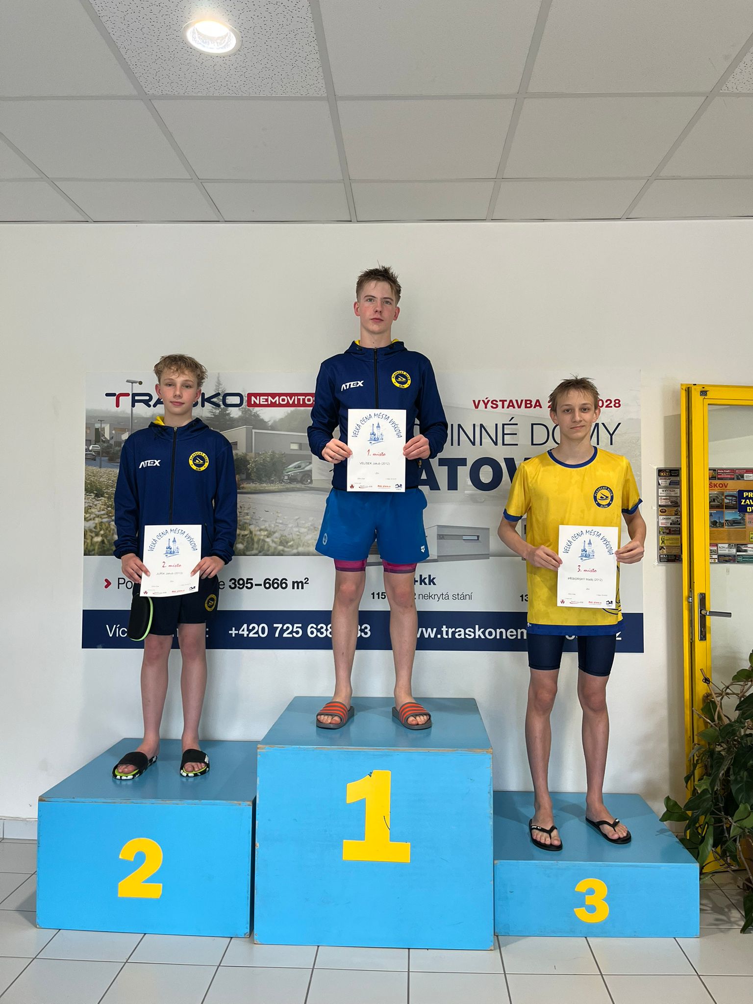 3. místo – Jakub Juřík (200 Prsa), Matěj Příborský (100 Znak, 200 Znak), Jakub Velísek (100 motýl)