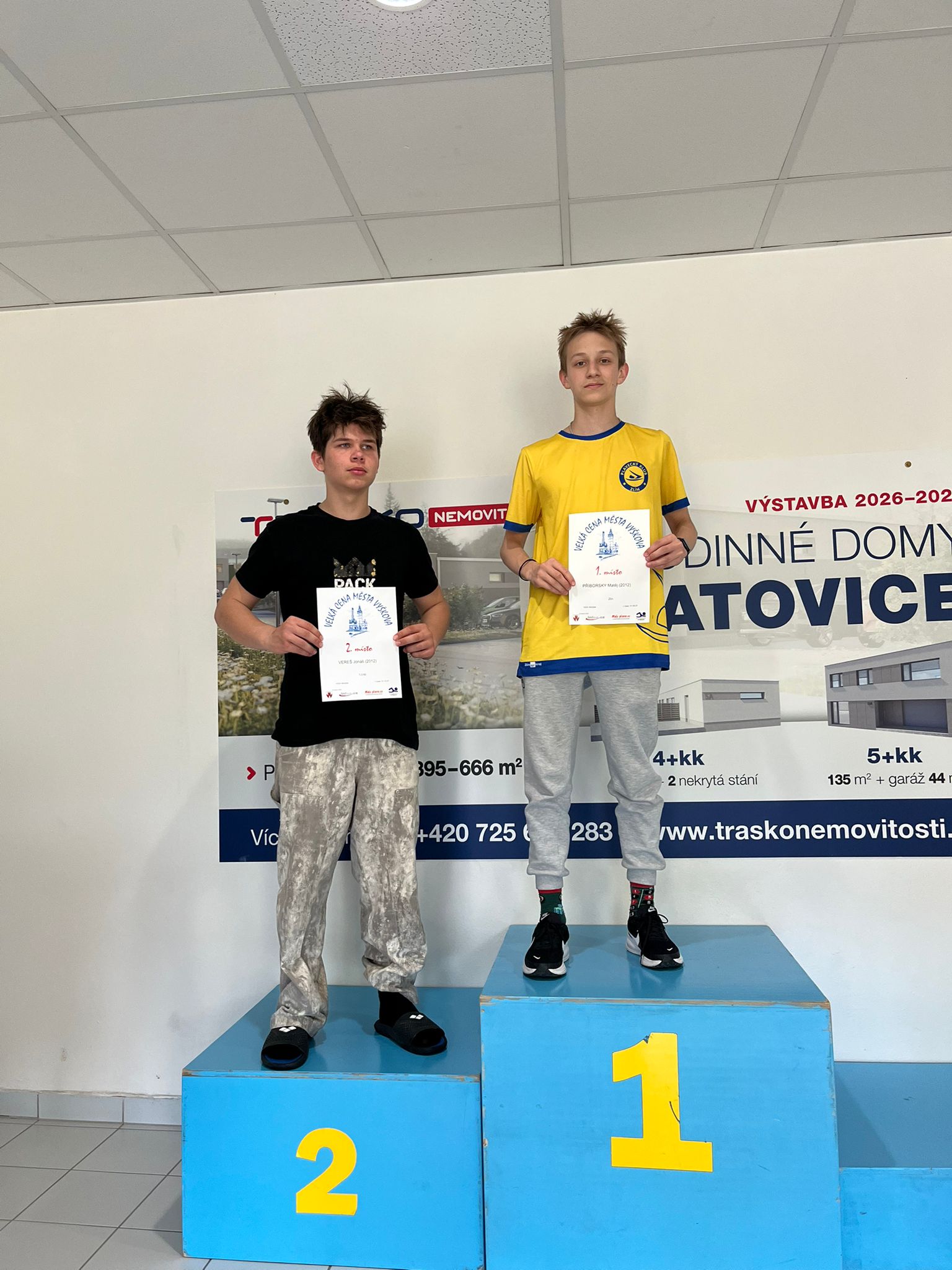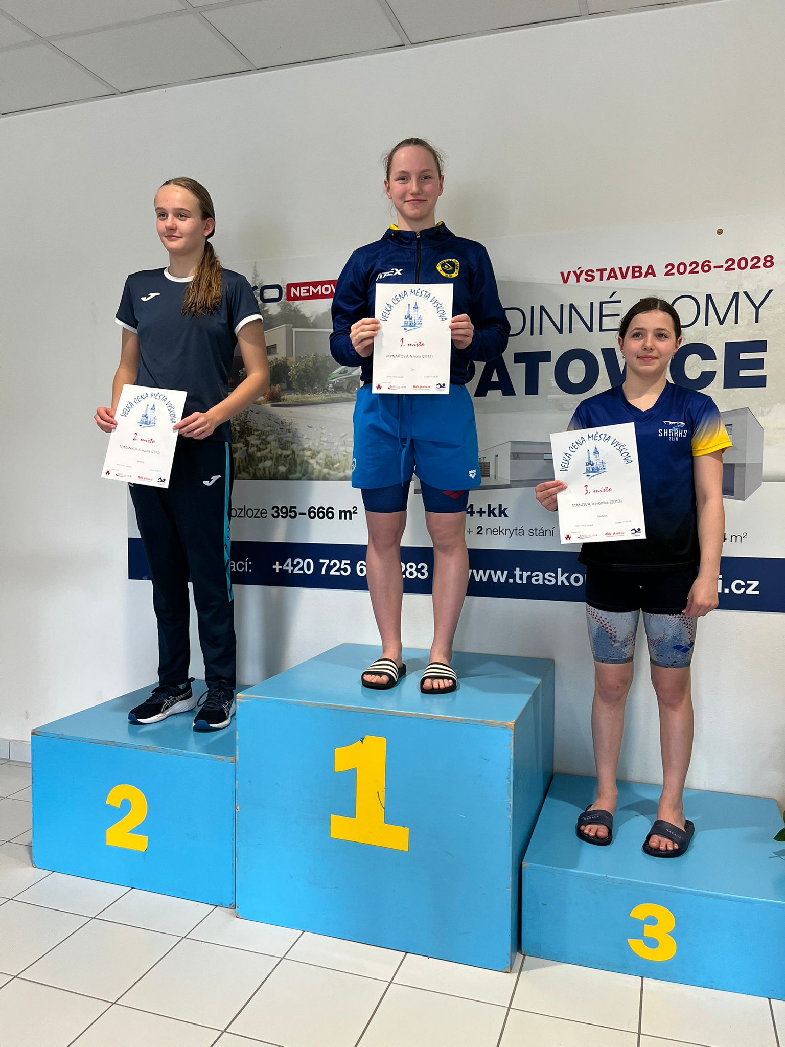 1.místo – Nikola Mynářová (100VZ), Matěj Příborský (100 Motýl), Jakub Velísek (100 Znak, 200 znak)