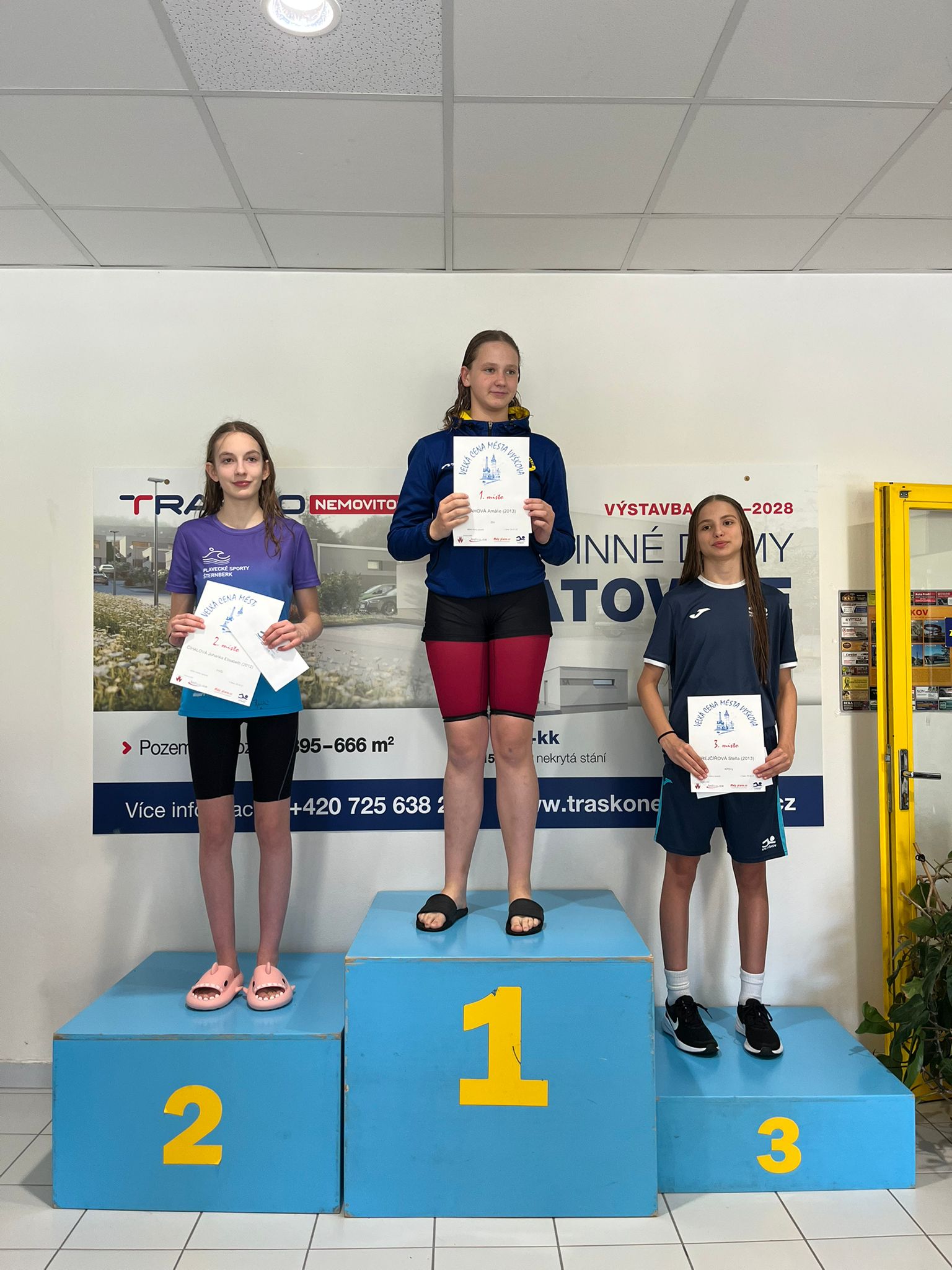 2. místo – Amálka Blahová (200Prsa), Jakub Juřík (200 znak, 100 Prsa), Nikola Mynářová (100 motýl)